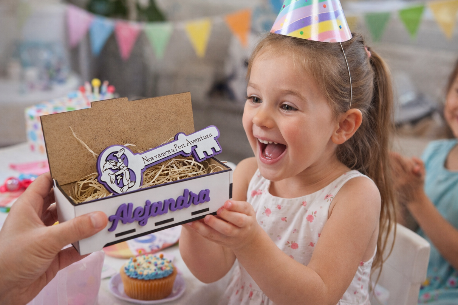 Puedes personalizar el texto de la caja, de esta forma podrás adaptar la frase a vuestra sorpresa y añadir el nombre del peque en el frontal de la caja, haciendo que cada pieza sea única y totalmente personalizada.