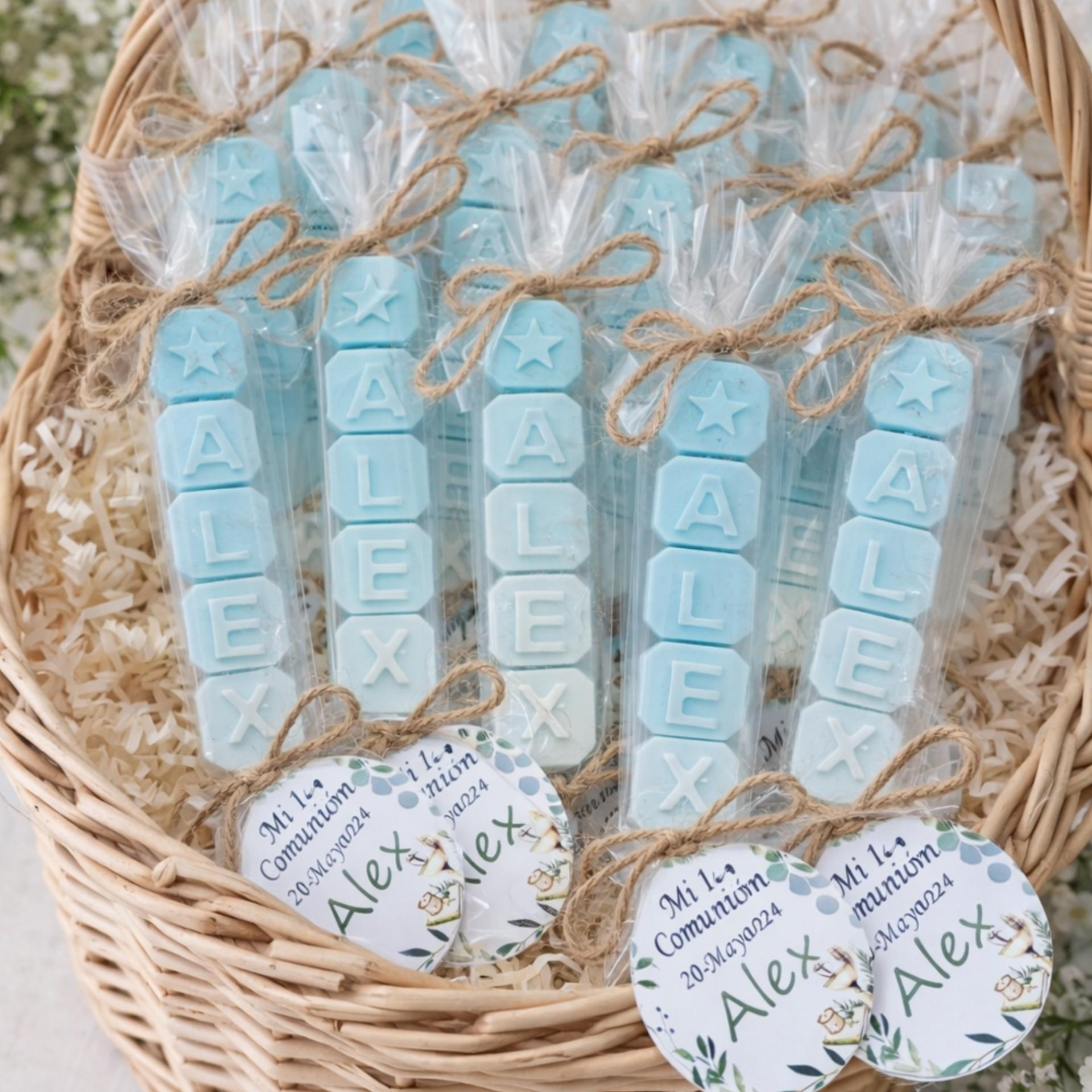 Nuestros jabones personalizados con nombre son el detalle perfecto para sorprender a los invitados en bautizos,comuniones, cumpleaños, baby shower y celebraciones especiales.
